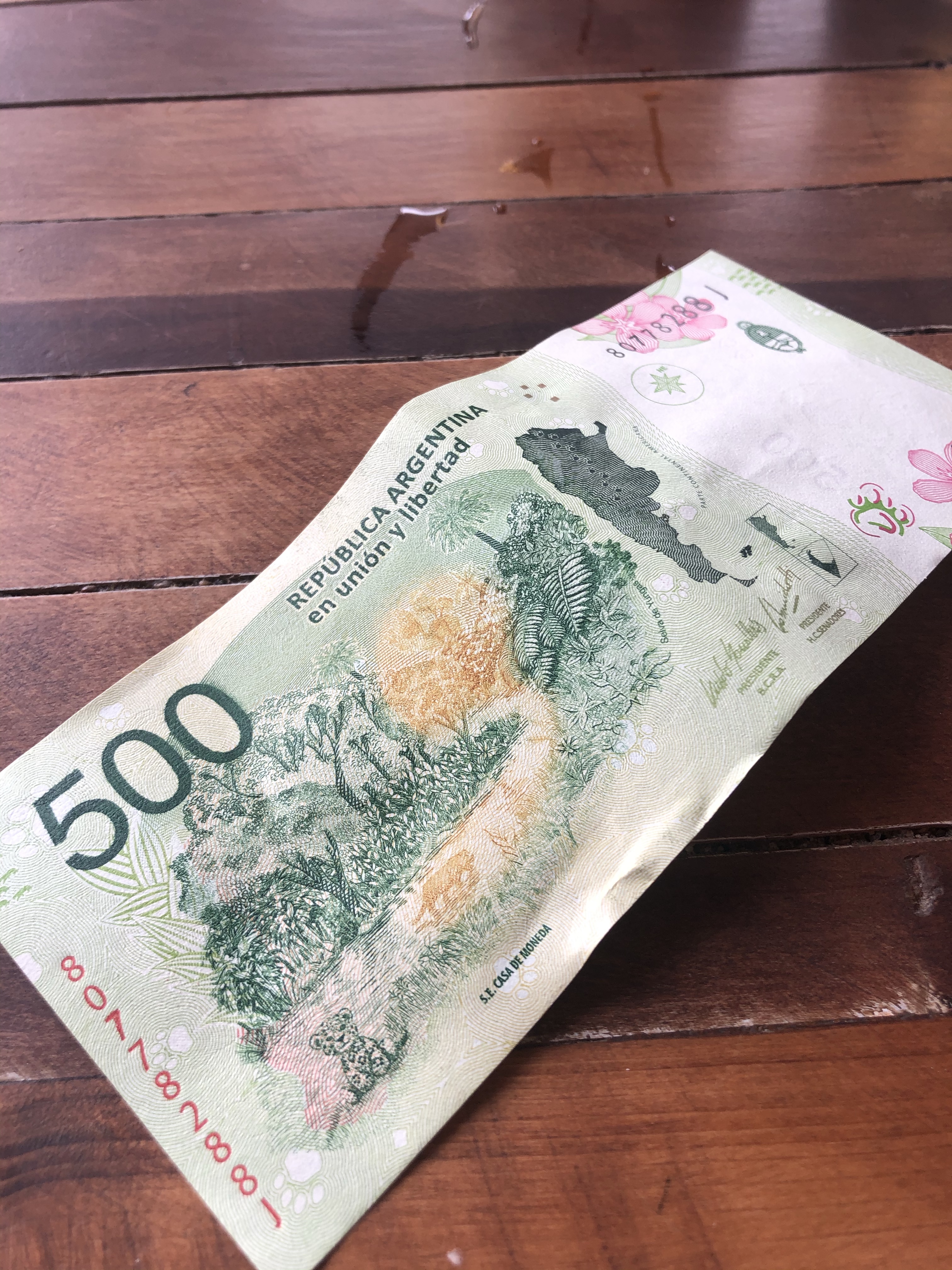 Við komum hingað með töluvert af dollurum vitandi það að einhver áhætta væri í argentíska gjaldmiðlinum (ARS) og að betra gæti verið að hafa dollara. Hér eru gjaldeyrishöft og hömlur sem ég taldi mig þekkja frá Íslandi en munurinn er sláandi. Ef þú átt pesóa hér þá geturu bara að mestu skipt innlenda gjaldmiðlinum upp í 100 dollara á mánuði.
